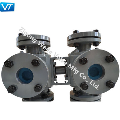 A double ball valve is two ball valves connected by a connecting rod, and the valve outlets are in the same direction.